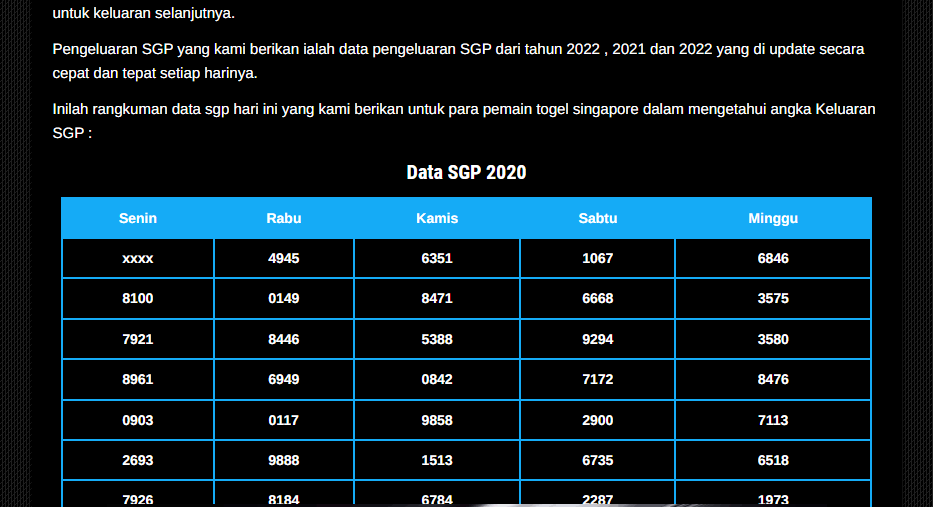 Pengeluaran Sgp hari ini merupakan bagian situs yang menyediakan seputar keluaran singapura hari ini secara live draw 4D wla tercepat dan terpercaya yang mana banyak sekali web alternatif yang menghadirkan result sgp tapi tidak semuanya digarap dengan yang manis, dengan begini web kami berupaya menghadirkan live draw sgp update tercepat yang. Live Pengeluaran SGP 4D Hari Ini Tercepat - Live Singapore Pools Seiring bertambah banyaknya penggemar Toto SGP saat ini, anda bisa dengan mudah menemukan situs-situs yang memuat Live Pengeluaran SGP, Live Result Singapore, Live Draw Toto SGP Tercepat, Live Keluaran SGP Hari Ini di mesin pencarian.